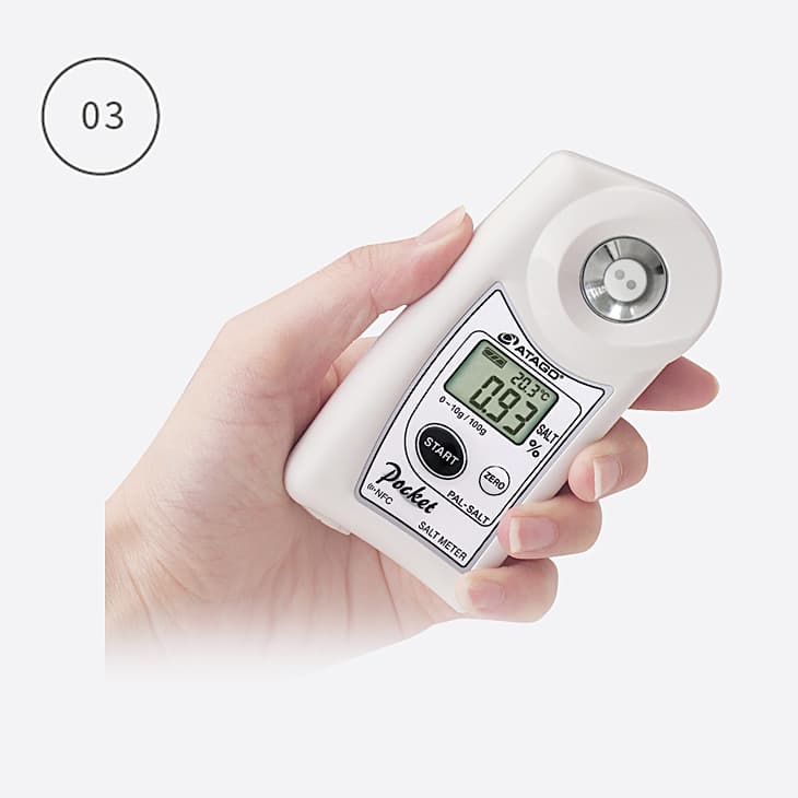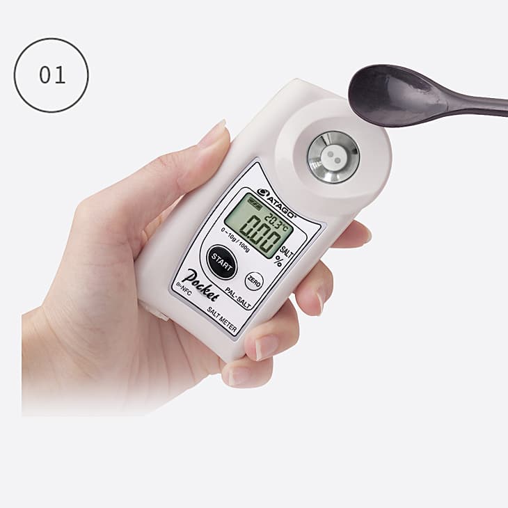 ![]() | Salinity to a decimal point We have heard many concerned voices with the accuracy of the conventional salt meters that only display rough estimated salt levels and how results may vary depending on how the sample was measured. ATAGO’s salt meter will not just estimate whether it is too salty or not, but rather numerically display the result as a salt concentration. |
