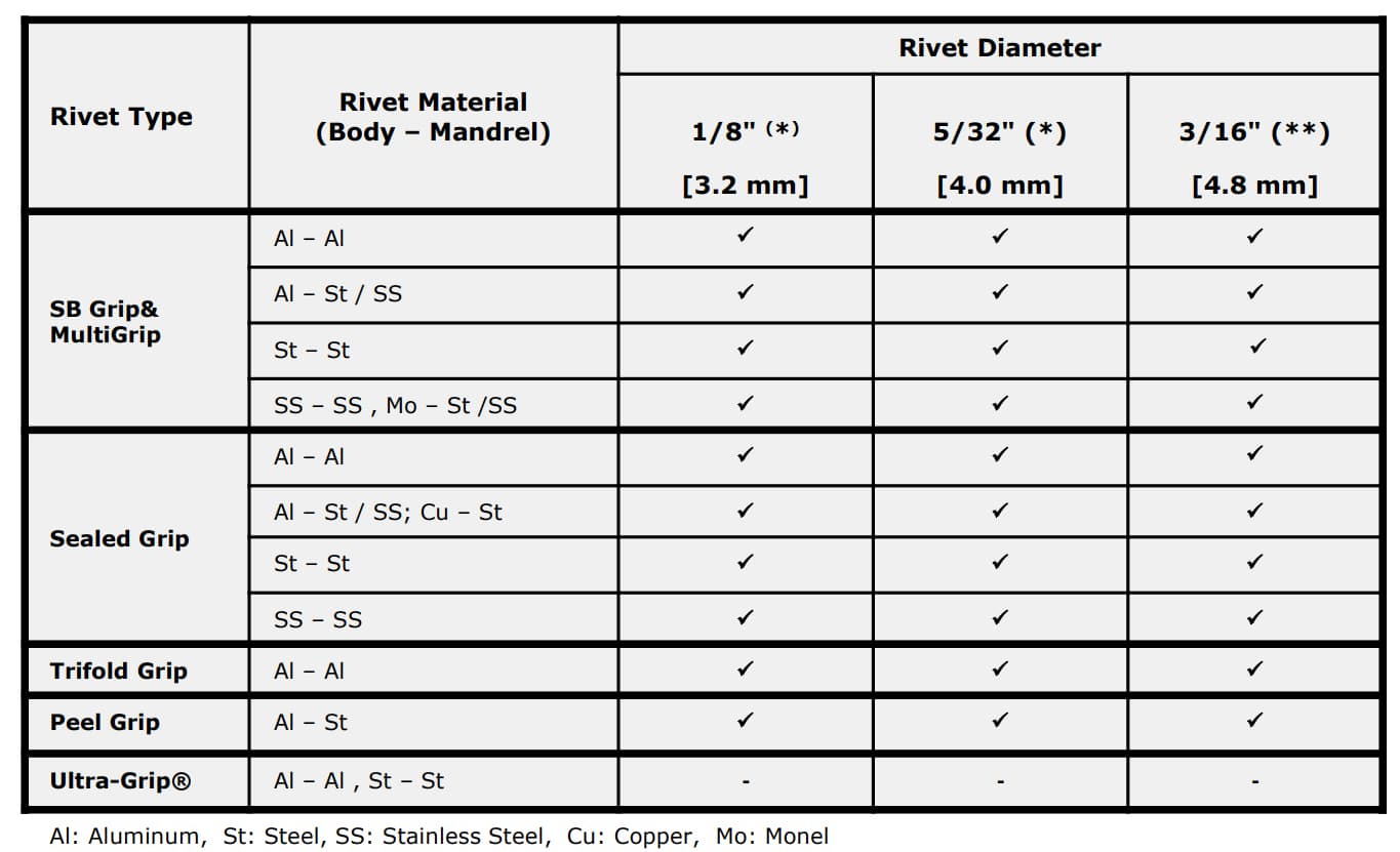 | Blind Rivet Setting Capacity (mm) | 3.2 - 4.8 mm |