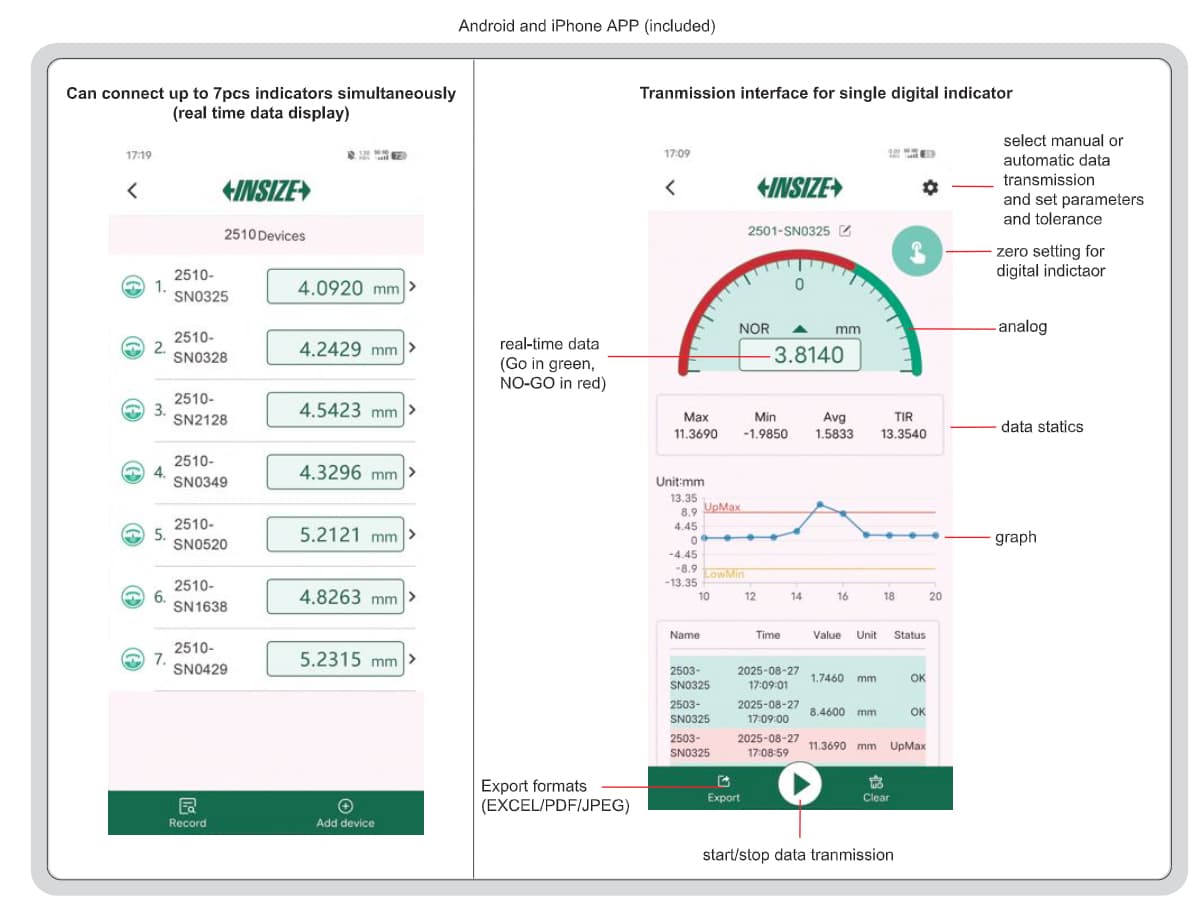 Insize 0 - 12.7 mm / 0.5 inch Bluetooth High Precision Digital Indicator (Flat Back), 2510-10F