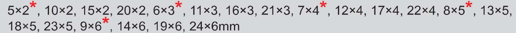 - (*) Parallelism between top and bottom and height difference of a matched pair of 5x2mm, 6x3mm, 7x4mm, 8x5mm and 9x6mm in 6511-20 is 7pm