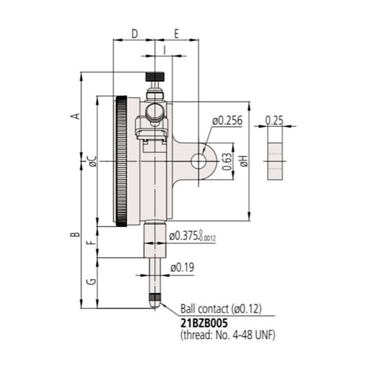 Mitutoyo 0 - 0.05 inch Standard Type Dial Indicator with Lug Back, 2923A-10