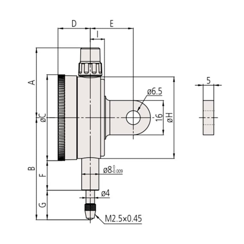 Mitutoyo 0 - 1 mm Compact Dial Indicator with Lug Back, 1929A