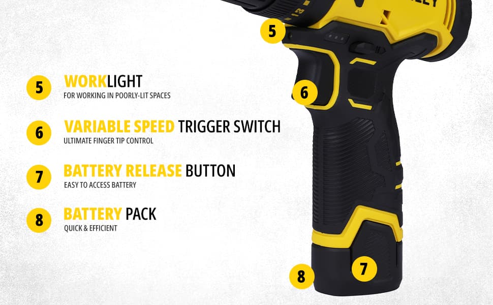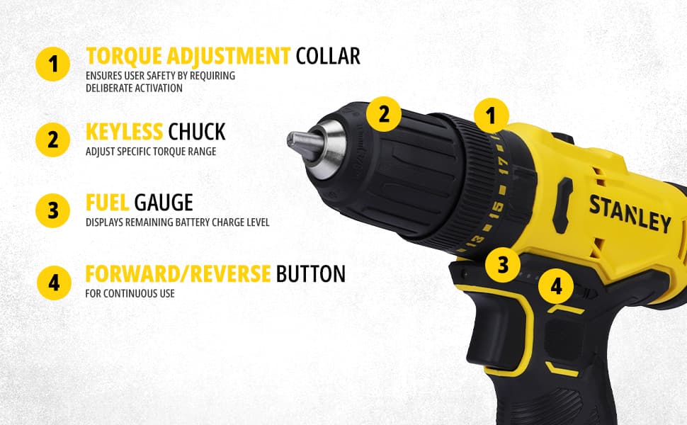 Stanley 12V / 2.0 Ah / 10 mm Brushed Cordless Hammer Drill Driver with 2 Batteries & Charger, SCH10D2K