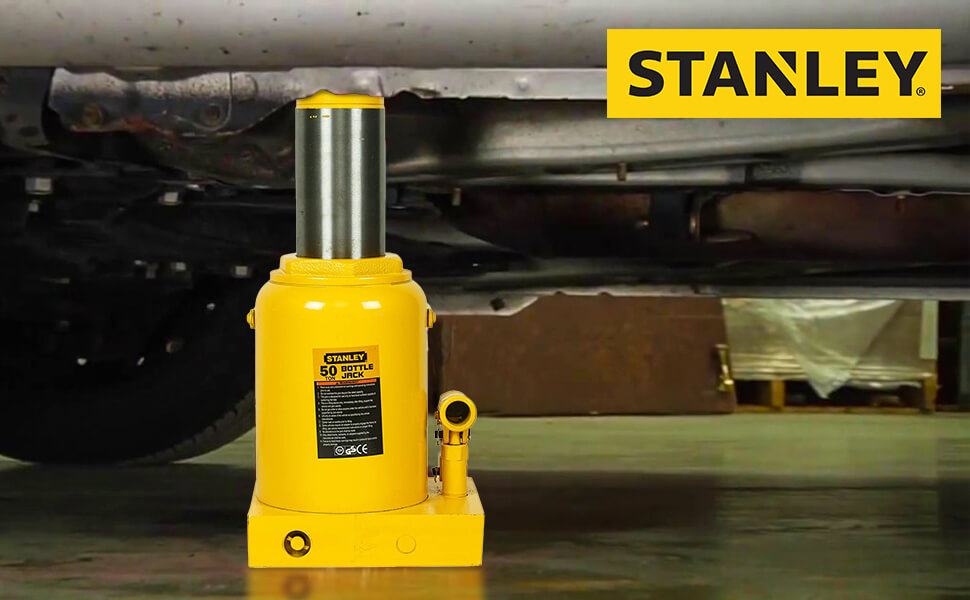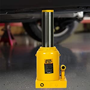 These Hydraulic Bottle Jacks, also known as hand jacks, can be used for lifting vehicles for repairing and servicing. They are made of advanced materials and techniques to retain their originality and durability. This Stanley - Hydraulic Bottle Jack is manufactured according to CE-certified design and specifications. It has a cylindrical head top with a flat base that supports it to maintain the grip when mounted with the lifting rod. These Bottle Jacks have a high weight-lifting capacity, making them suitable for heavies automobiles like trucks. The Stanley - Hydraulic Bottle Jack uses efficient hydraulic technology for work.