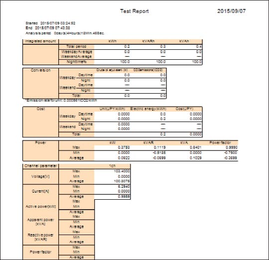 Analysis and reporting is enabled by simply clicking on the desired data on the software screen. Analysis can be viewed by trend graph, overage, maximum and minimum value of voltage current, power, and power factor. Report generating can be set daily by daytime, nighttime, working day, or off day. It can also be set on a monthly period based on daytime or nighttime, working day or off day. Additionally, energy data to quantify into crude oil barrels or CO2 can also be converted.Trend analysis graph![]() |