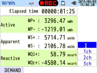 Integration Value Energy (active, reactive, apparent), Demand (list or graph display of change in a specific period and as a whole) |
